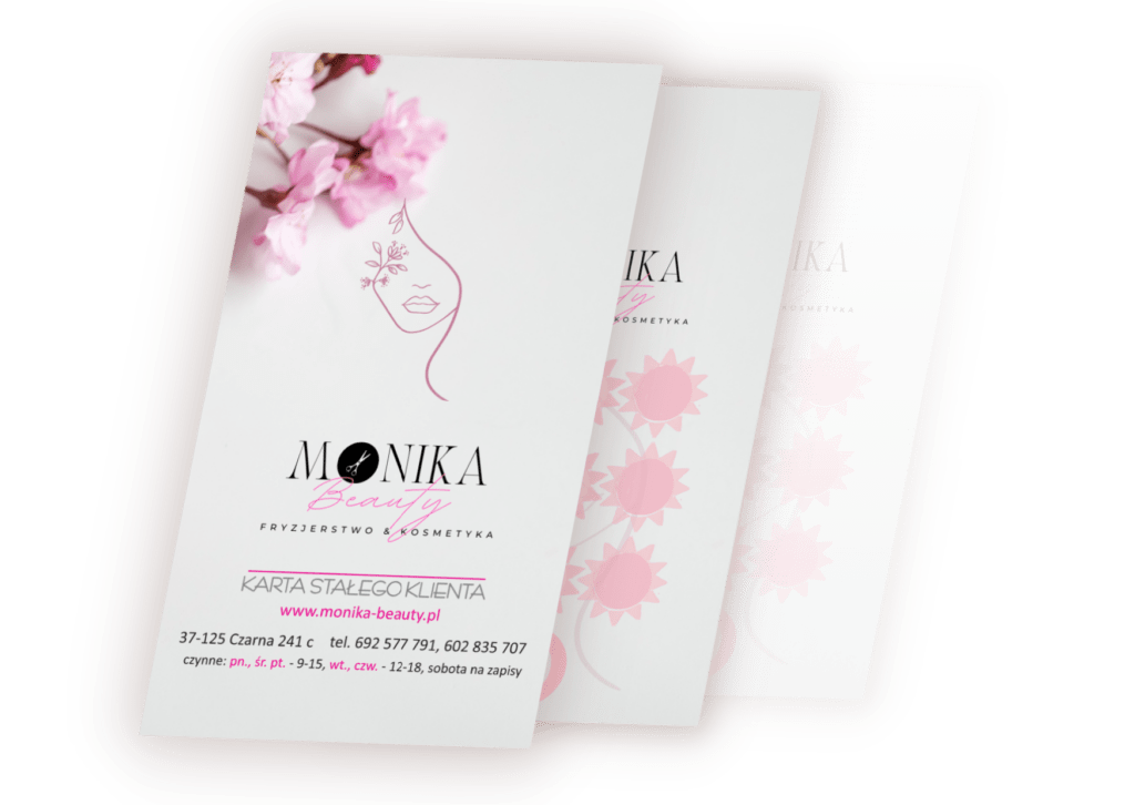 Z przyjemnością chciałam poinformować o wprowadzeniu karty stałego klienta do swojego salonu, Monika-Beauty aby nagrodzić lojalność wszystkich klientów poprzez ekskluzywne promocje i zniżki. Serdecznie dziękuję za zaufanie i zapraszamy do korzystania z moich specjalnych ofert.